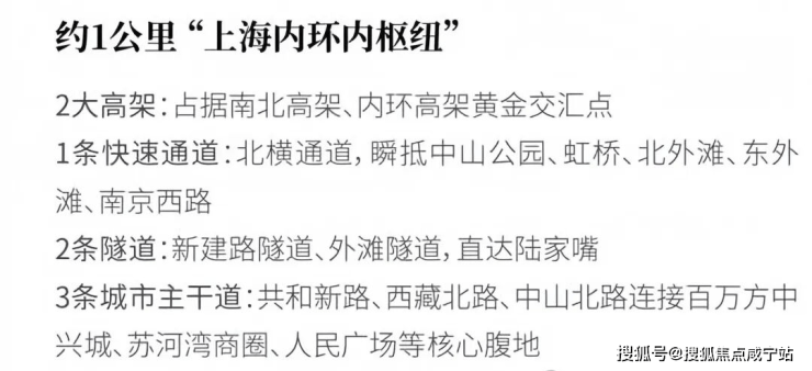 轨交轨道交通1号线(中山北站)距离本项目直线距离100米!一站上海火车站,四站人民广场,五站新天地!且四站内可换成2、3、4、8、12、13号线几乎可达上海各处!自驾:自驾3公里可达人民广场