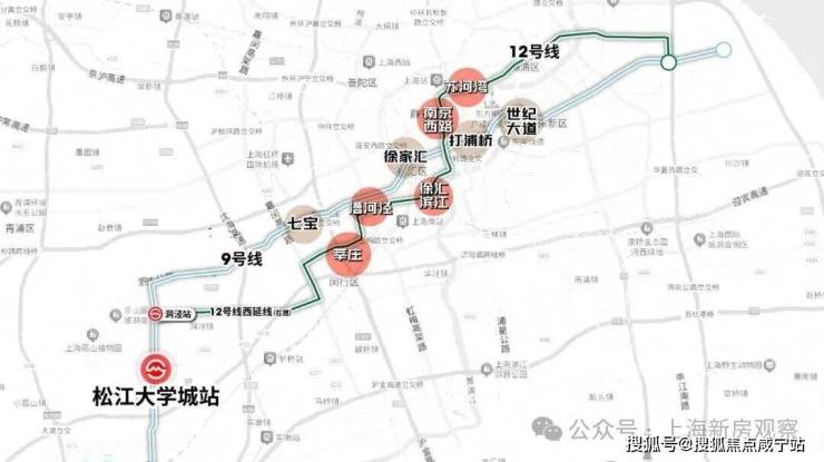 最后,来重点聊一下交通:从项目出发,经T2电车直达9号线松江大学城站。上车后,业主6站七宝、9站漕河泾,并且能轻松畅达徐家汇、打浦桥等浦西区域。除此之外,1站就能换乘即将通车的12号线西延伸段,即可畅达莘庄、徐汇滨江、南京西路。