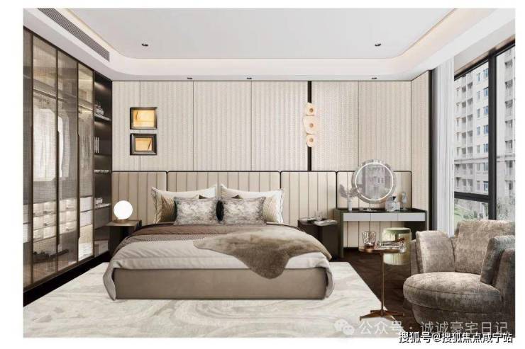 • 250㎡家族平层:三卧+1 书房,双套房设计,南向面宽 18 米,主卧转角落地窗直面恒隆天际线。