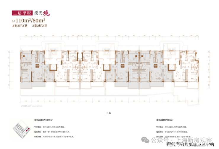 项目主打3层的超低密洋房产品,另有3套联排产品,户型类型丰富;洋房为创新的多层退台式洋房,层高高于传统常规洋房产品,3.3-3.6m层高对标别墅产品层高。