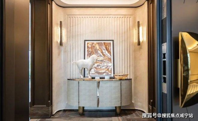 例如入户玄关铺设有“石材皇后”鱼肚印象,这种级别的奢石在很多项目中通常仅作局部镶嵌。