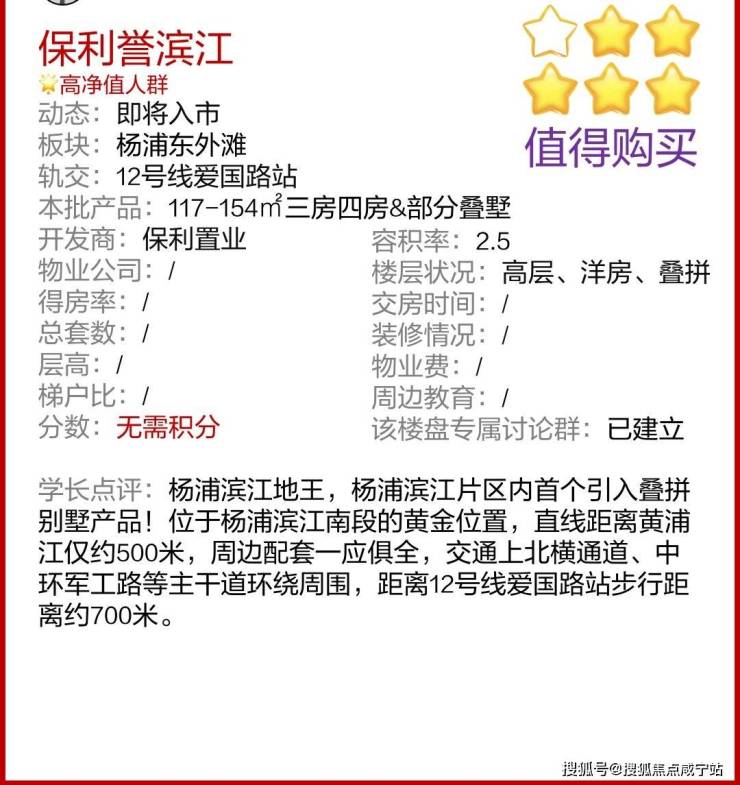 👑项目简介:杨浦滨江 品质红盘