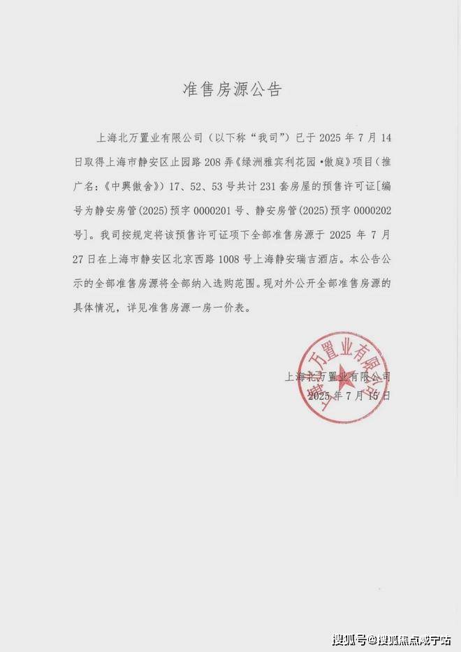 2022年9月,北万置业以1205984万元竞得的静安区中兴社区C070202单元304-03地块,成交楼板价47840元/㎡,溢价率0%,房地联动价133000元/㎡。随后上海北万置业有限公司70%股权在联交所上市,交易给了万科。