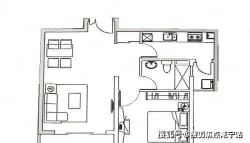 一室两厅一卫,建筑面积67㎡,户型周正、南北通透,朝南有个大阳台,L型厨房,餐客厅一体,活动空间大。