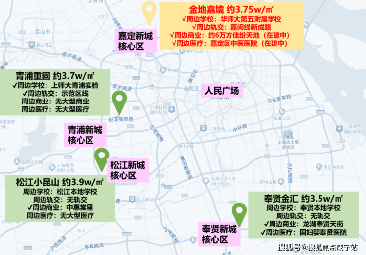 横向对比来看同价位的新房,青浦重固约3.7w/㎡、松江小昆山约3.9w/㎡、奉贤金汇约3.5w/㎡。价格相近,配套上也只有部分能与金地嘉境并驾齐驱,整体仍然有差距!