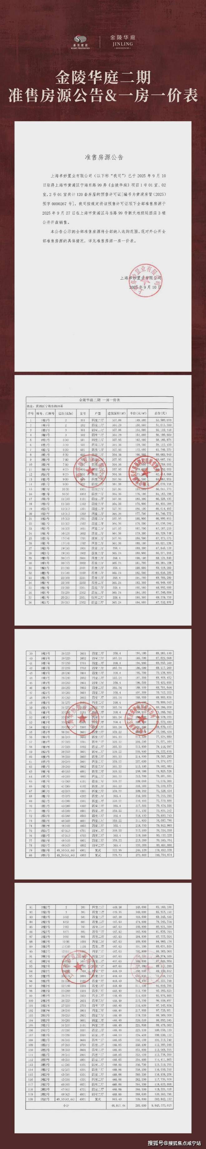 【金陵华庭】一期一房一价表