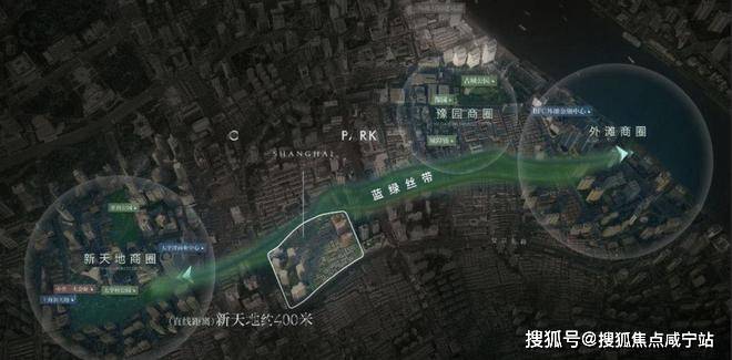 距离新天地直线距离约400米,作为蓝绿丝带规划上的关键节点,随着大新天地东进南拓战略逐步实施,通过水景、绿地和公共空间,串联新天地、豫园、外滩三大世界级商业版图。