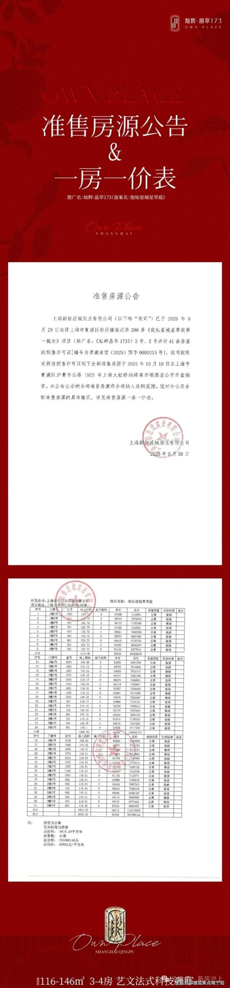 大虹桥徐泾法式科技奢邸灿辉·晶萃173今日开启认购,推出建面约116-122㎡3房,均价60562元/㎡!总价约650-752万