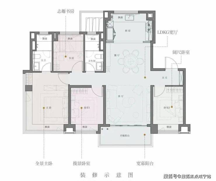 建面约110㎡3房2厅2卫 ,小编总结了这个户型几个核心亮点: