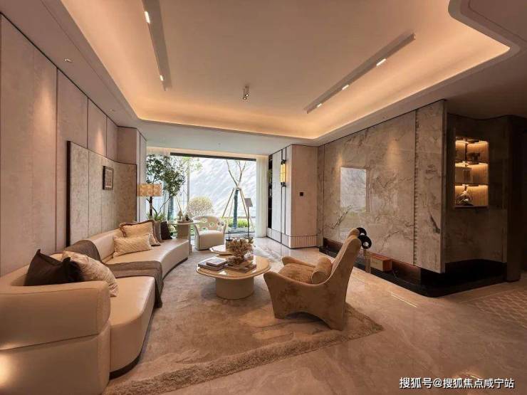 约420㎡立体下沉庭院,千万级豪宅同款悬浮水池,搭配4.3米飞瀑,塑造沉浸式的度假感受;