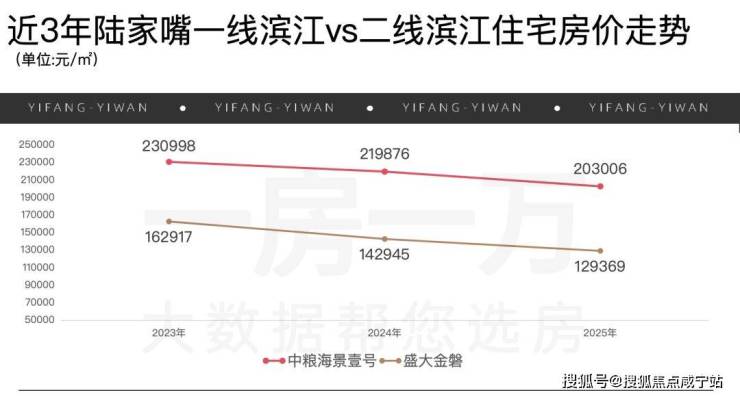 看一看当下滨江豪宅的市场表现,同样在陆家嘴:一线滨江,要比二线滨江高出约7万/㎡。