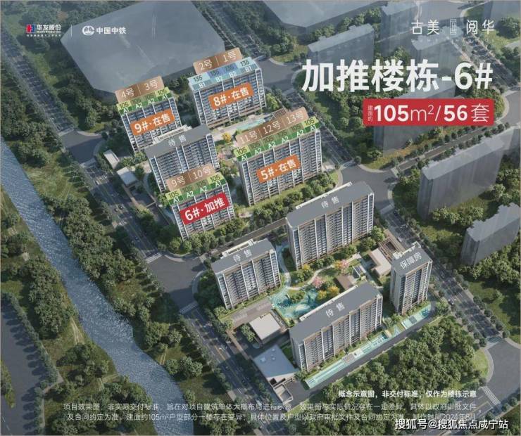 【古美阅华】可售住宅由6栋14层和2栋16层的住宅组成,其中14层小高层无连廊,16层住宅仅在12和14层有连廊。
