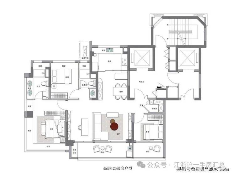 建面约125㎡高层户型