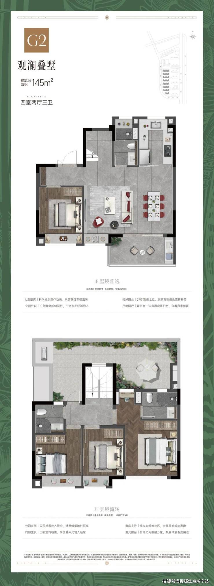 立足于居住却又远超于居住的空间,在建筑面积约145㎡-160㎡观澜叠墅中得到完美诠释。