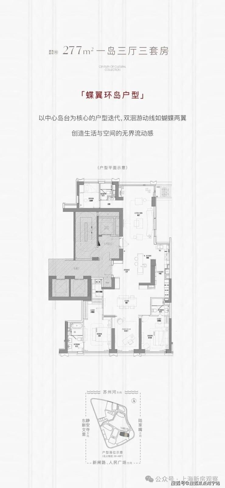 该栋楼南向可观3000㎡中央景观绿化;中间户型6层以上北可观苏州河景,且两侧都能看见苏州河景。可见4#大部分楼层都直面苏州河,这栋楼的景观视野放在当下新房市场是独一份的,只有48套,错过再无!