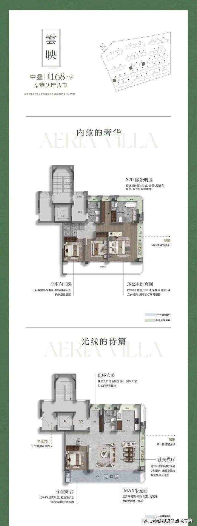 整个项目容积率仅约 1.5,远低于常规住宅项目,规划了 叠墅和小高层两类产品,建筑布局充分考量视野与私密性,确保每家每户都能享受充足的采光与景观资源。