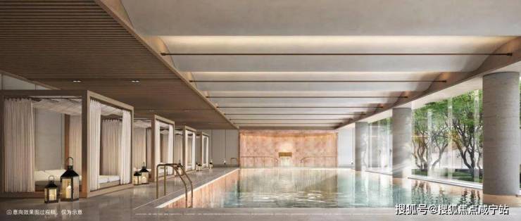 地面无车位,全人车分流,车位比约1:1.3,另外规划有下沉式庭院、地下会所、风雨连廊以及部分架空层,其中会所包含泳池、健身房、瑜伽室等!