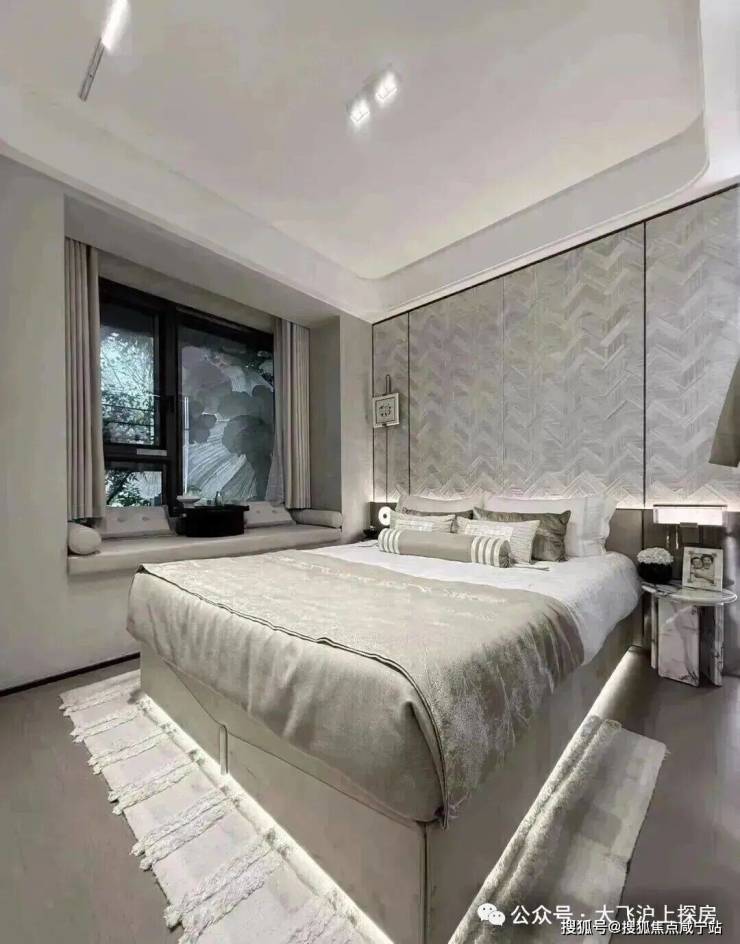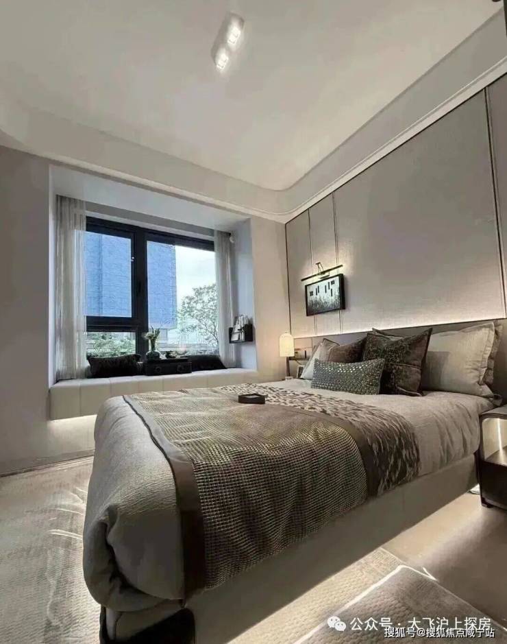 尤其是主卧大套房安排上独立衣帽间+独卫,配上270度的转角飘窗,一扇窗就是一幅流动的四季自然画。