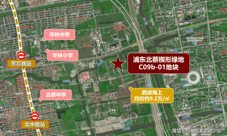 该地块位于浦东内中环,属于浦东北蔡板块,距离18号线芳芯路直线距离约1.5公里。地块的东面就是张江科技科学城和罗山路高架。