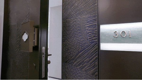 高端铸铝门与飞利浦六合一智能门锁安全便捷,并为每一户定制门牌号,青玉石材,配置内发光的白玉底座,更彰显项目品质和审美。