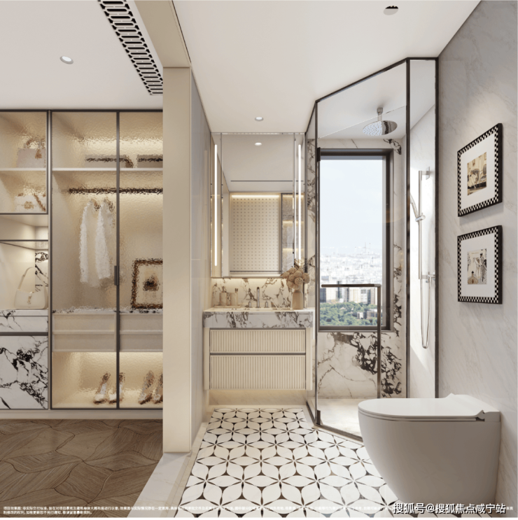 :厨房、卫生间飘窗拓展为收纳柜,主卧270°转角飘窗延展休憩视野;