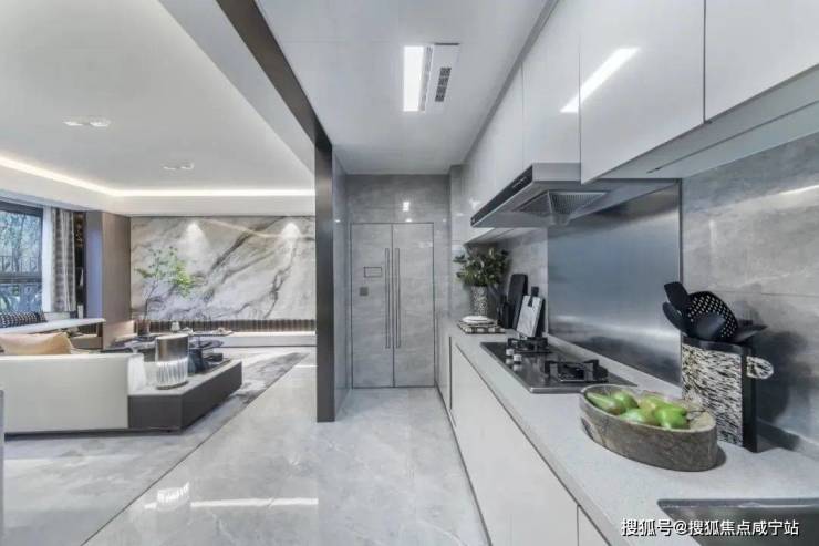 大面宽L型厨房,搭配北向生活阳台,整体尺度奢阔从容的同时,更显通透;
