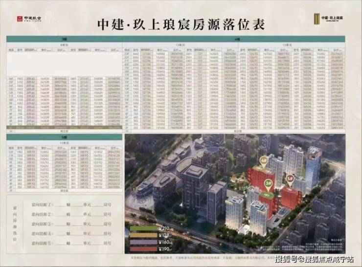 128㎡户型66套,163㎡户型22套,190㎡户型22套,210㎡边套(四房)15套,210㎡中间套(三房)15套。