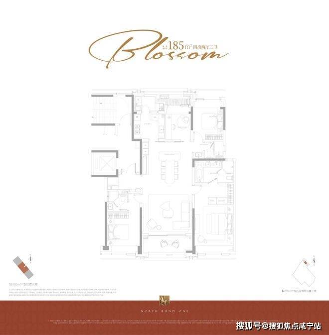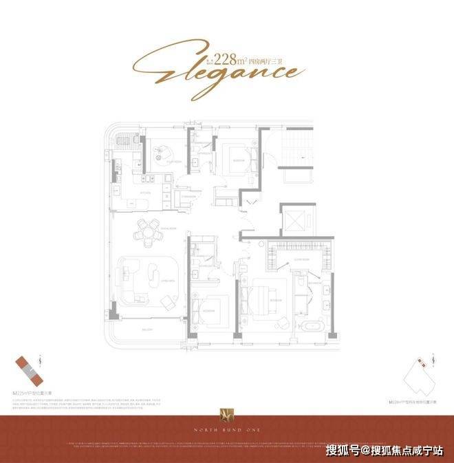 该户型均为边套,拥有更私密的居住体验和客餐厅阳台连续17米的无遮转角景观面,户型尺度更为阔绰,客厅采用转角采光,最大化引入景观;主卧套房尺度奢华。因为建筑立面正面北外滩世界会客厅,东西边套阳台可直观欣赏北外滩的未来城景,东边套部分房源甚至能将陆家嘴“三件套”框入每日窗景;西边套依旧视野通透,南北无遮挡,西向有下午的采光优势,高区房源完全任何遮挡,视野价值巨大。它代表了项目对高端居住体验和稀缺景观价值的顶格兑现。