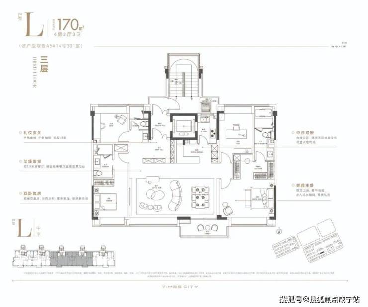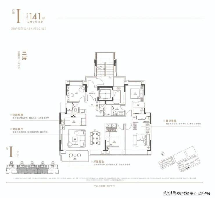最后,一个优秀的户型应该具备的特质,例如主卧套房、干湿分离、多飘窗 ..时代之城建面约109㎡的产品全部具备。
