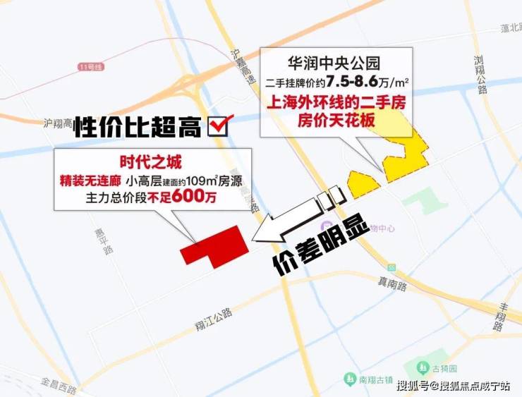 首先,时代之城距离11号线直线约900米,步行可达且不受11号线+沪嘉高速噪音的影响 ,真正的地铁房。