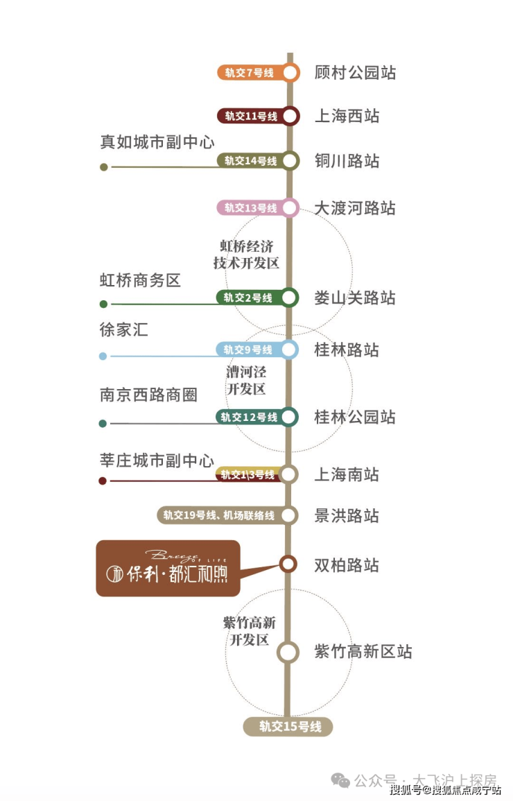 3站紫竹、4站徐汇,可换乘1号线通往徐家汇、新天地;未来19号线建成后,在景洪路站换乘可4站前滩、6站后滩,直达陆家嘴等CAZ核心。