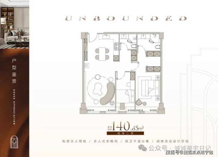 • 250㎡家族平层:三卧+1 书房,双套房设计,南向面宽 18 米,主卧转角落地窗直面恒隆天际线。