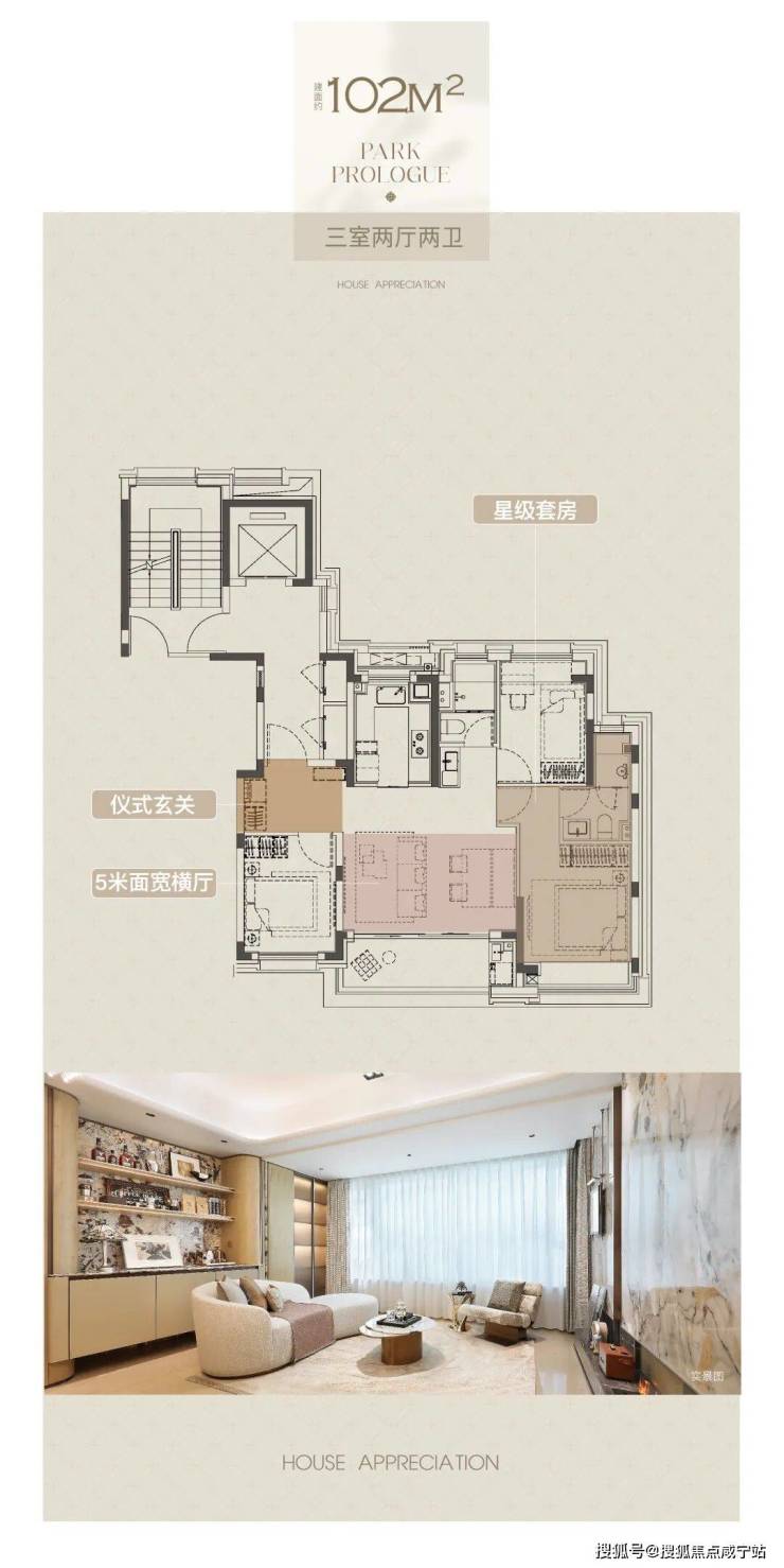 建面约102㎡户型,三房两厅两卫格局,同样的设计巧思打造出近乎双套房的生活体验。横厅设计,营造极致通透感,臻选奢石融入空间,层次灵动,优雅时尚。朗阔厨房,科学动线设计,搭配国际品牌五金和厨电,悦享精致烹饪时刻。主卧大飘窗,将空间最大程度延伸,打造舒居体验。