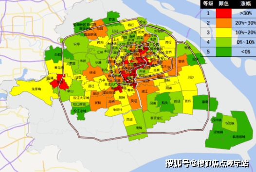 2、涨幅地图中,浅绿和深绿色,基本都是在外环外的板块。