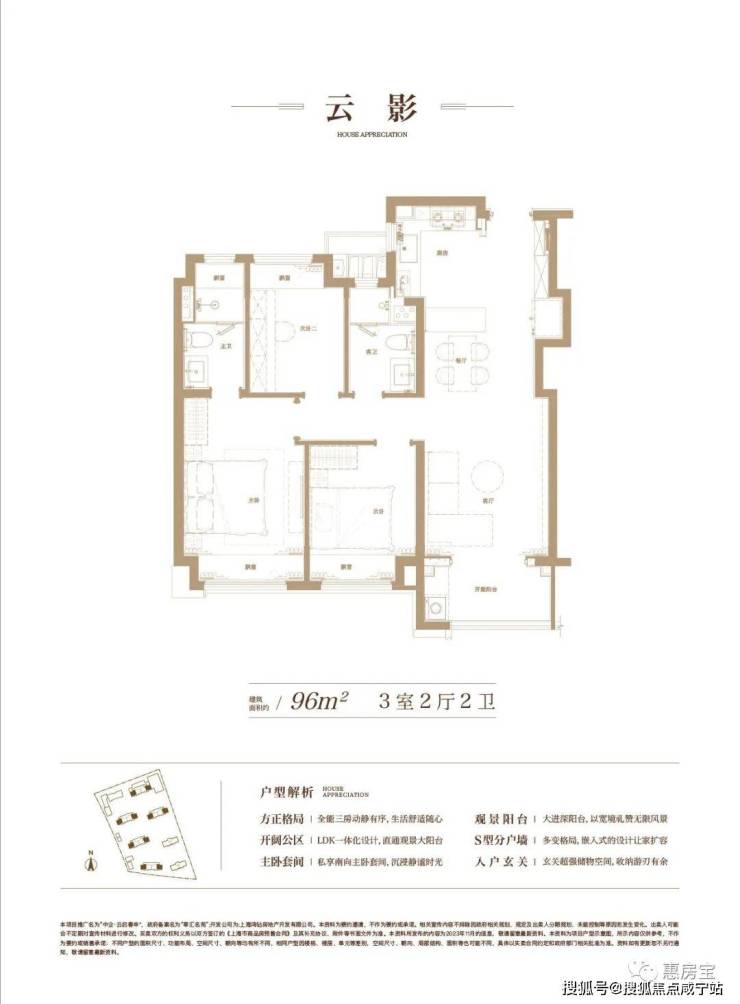 官方户型图如下:建面约96㎡3房2卫户型,三开间朝南,全卧室带飘窗。整个户型的采光、视野非常出众。