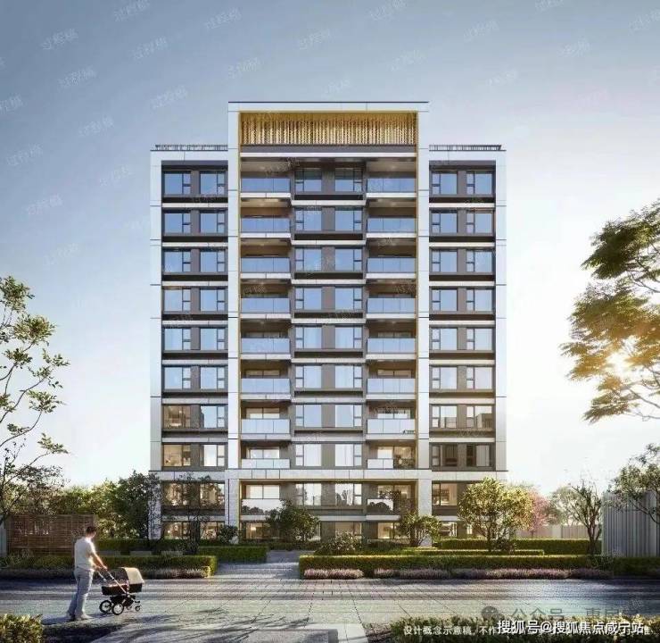 采用现代简约建筑风格,整体建筑线条简洁大气。立面点缀金色的框线,极简优雅但又不失格调,符合小区所在莘庄商务区稀缺核心住宅的定位。