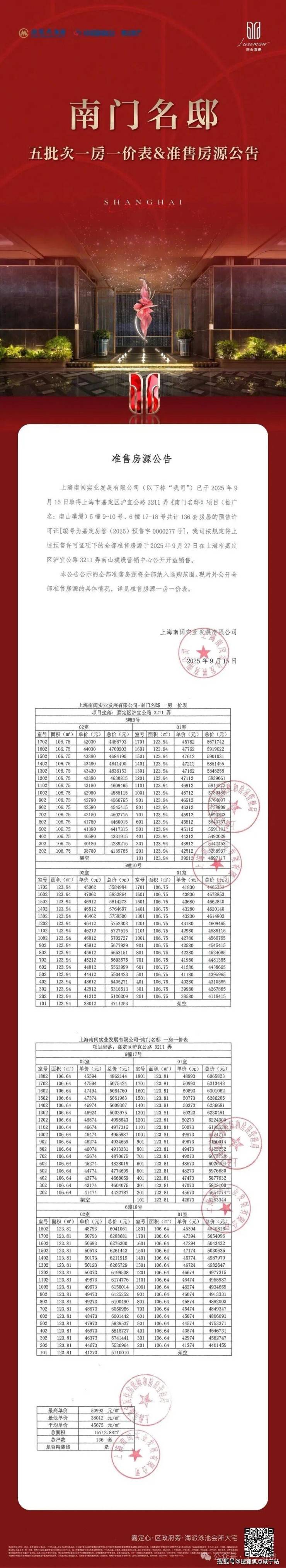 最新消息:南山璞缦项目五期加推105-123㎡3房户型,共136套房源,过会均价均价45675元/㎡;另前期少量105-198㎡3-4房在售,总价365万起,可直接认购!作为嘉定新城封面豪宅产品,项目备受购房者的关注!南山璞缦售楼处电话📞400-8800-703如有问题欢迎来电咨询,来电即可享受买房优惠!