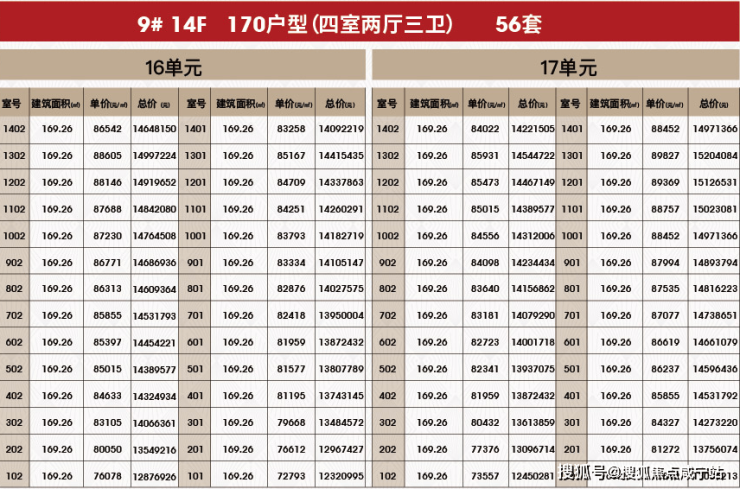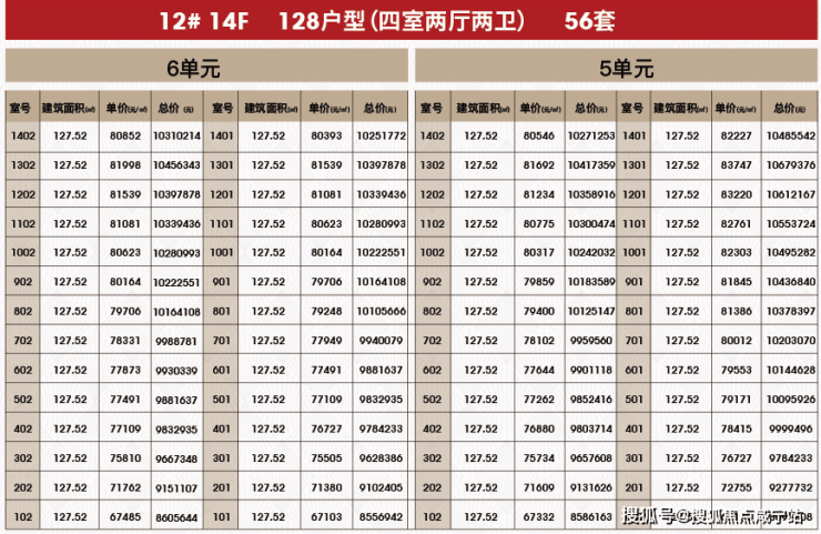 附一房一价表: