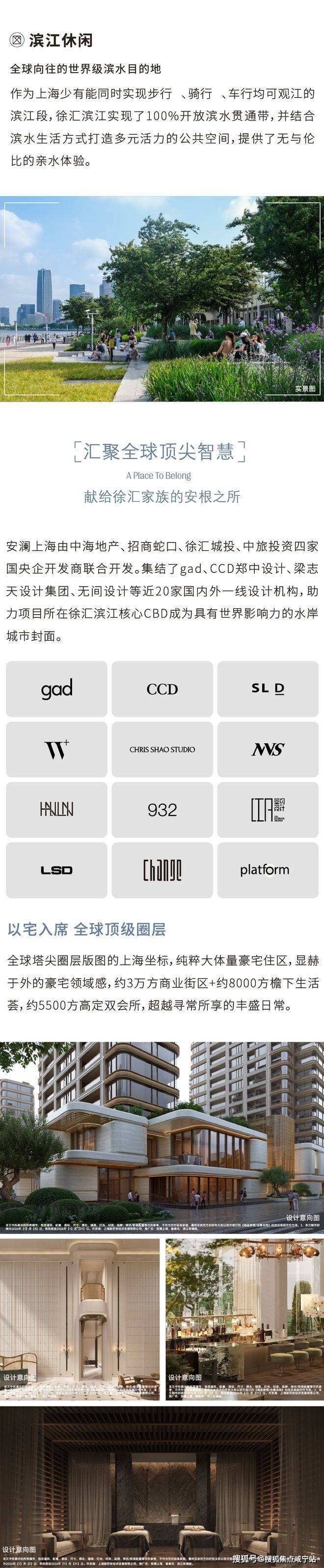 而安澜上海正处于徐汇滨江内环内的核心地段,是徐汇滨江最早开发,规划能级最高的核心江岸段。这里坐拥约1.4公里黄金滨江岸线,与西岸金融城一道,聚集总部办公、前沿产业、重奢商业、文化艺术、滨江生态、高奢酒店、高端居住等世界级城市资源内容,是徐汇滨江核心CBD的所在,更是助推徐汇滨江进阶全球水岸的核心能量地。