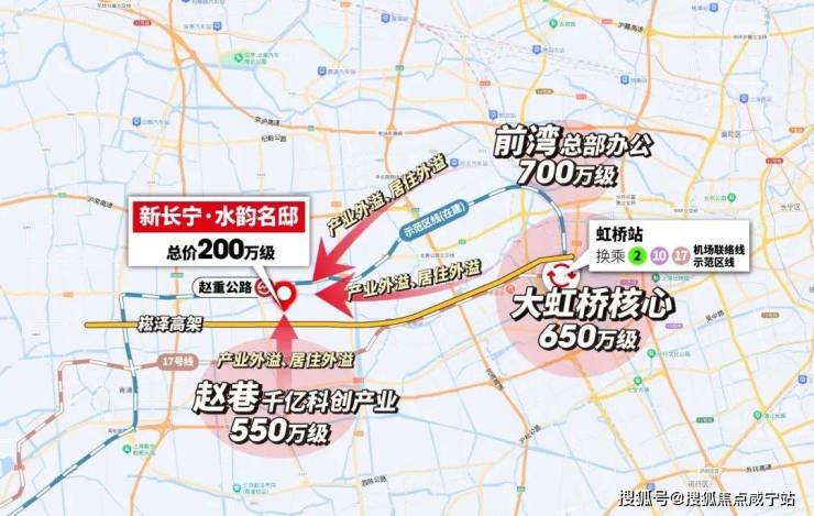 同时重固近邻大虹桥核心,南有赵巷千亿科创产业,东有前湾总部办公,这三大产业区新房550-800万级,居住势必外溢。