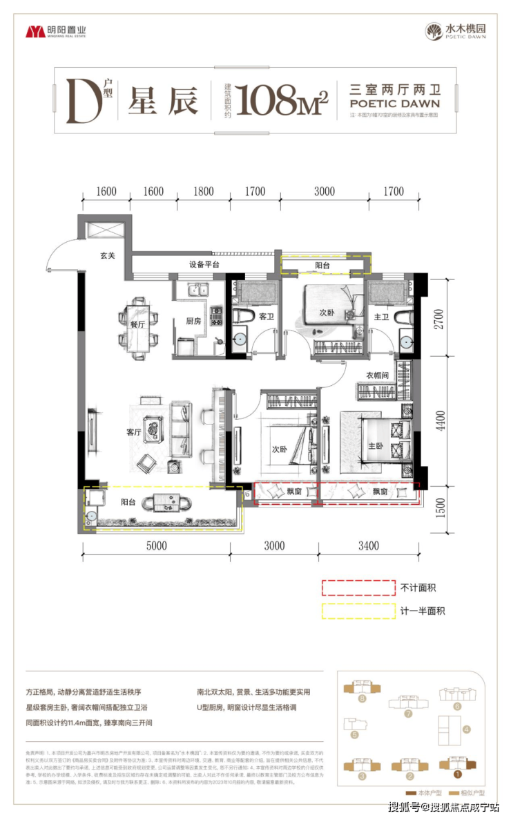 这个尺度的面宽,以往只会出现在120㎡以上的户型里,水木槜园竟然在108㎡的户型上就实现了!