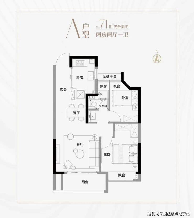 高层建面约71㎡2房2厅1卫