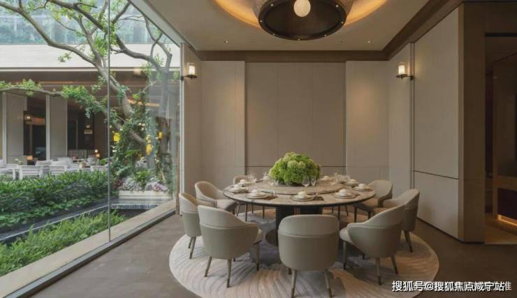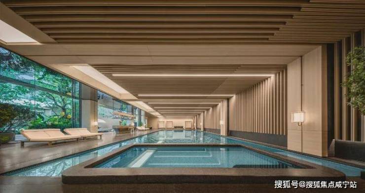 奢华度假式的恒温泳池,一整面落地玻璃面向中央下沉庭院,吸收自然采光的同时,也可以欣赏庭院美景!