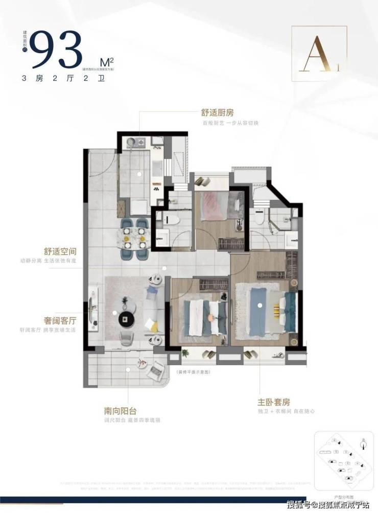 建筑面积约93㎡户型做到三房两厅两卫,比别人“多一卫”的设计,让三代同堂依然从容有度,更高性价比收获大宅生活感。让空间功能性、舒适度足以媲美市面上100㎡+户型。南向三面宽,拥有更多采光面,LDK一体化,打破空间界限,生活大有享法。