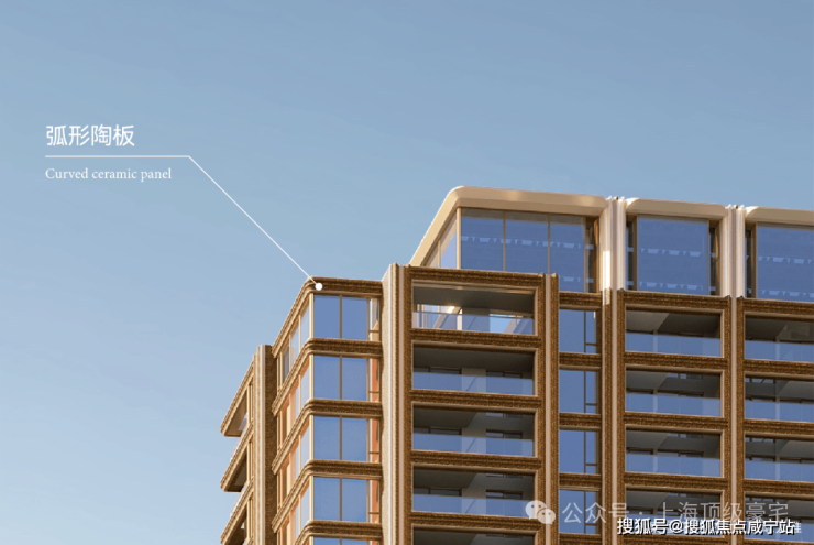 金茂璞元在建筑立面上实现了上海前所未有的全向艺术化。建筑四面采用同等考究的材质和语言,主体采用铝板+玻璃+陶三种材质精工雕琢,这种东西南北全立面住宅在上海极其罕见。