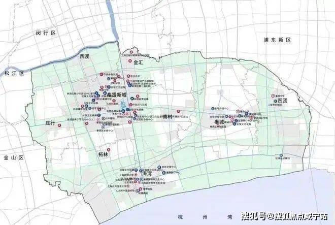进一步聚焦,奉贤区的核心是奉贤新城,奉贤新城的核心又在哪里?毫无疑问,奉贤新城的核心地带就在上海之鱼以及中央林地这一片。这个片区承载了奉贤新城作为上海副中心的职能,聚集市级、区级的公共服务。