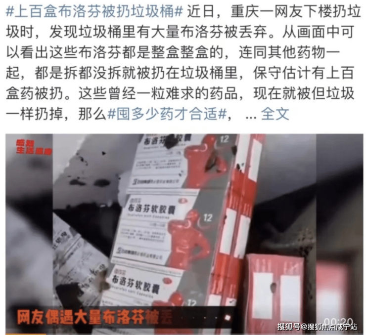 还记得不久前,有一则关于上百盒布洛芬被扔垃圾桶的新闻被广为传播