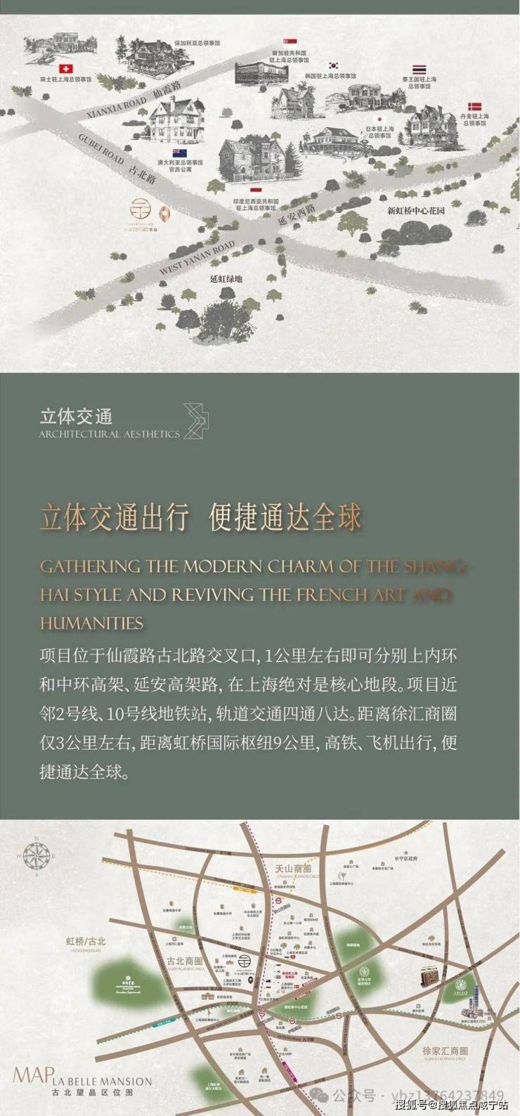 项目地处古北路与仙霞路黄金十字轴正心,距离黄金城道仅约1.7公里,坐拥古北CBD繁华商圈,