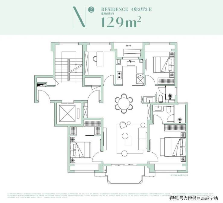 129㎡基本是这次产品线里的“人气担当”。四叶草格局让四个房间分布在四角,私密性和动线都有保证;南向三开间+宽尺度客餐厅,让一家人的起居、社交都很舒展。