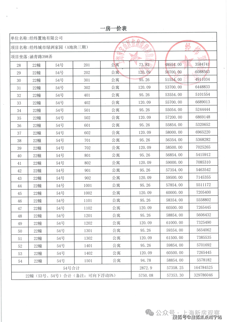 一房一价表如下: